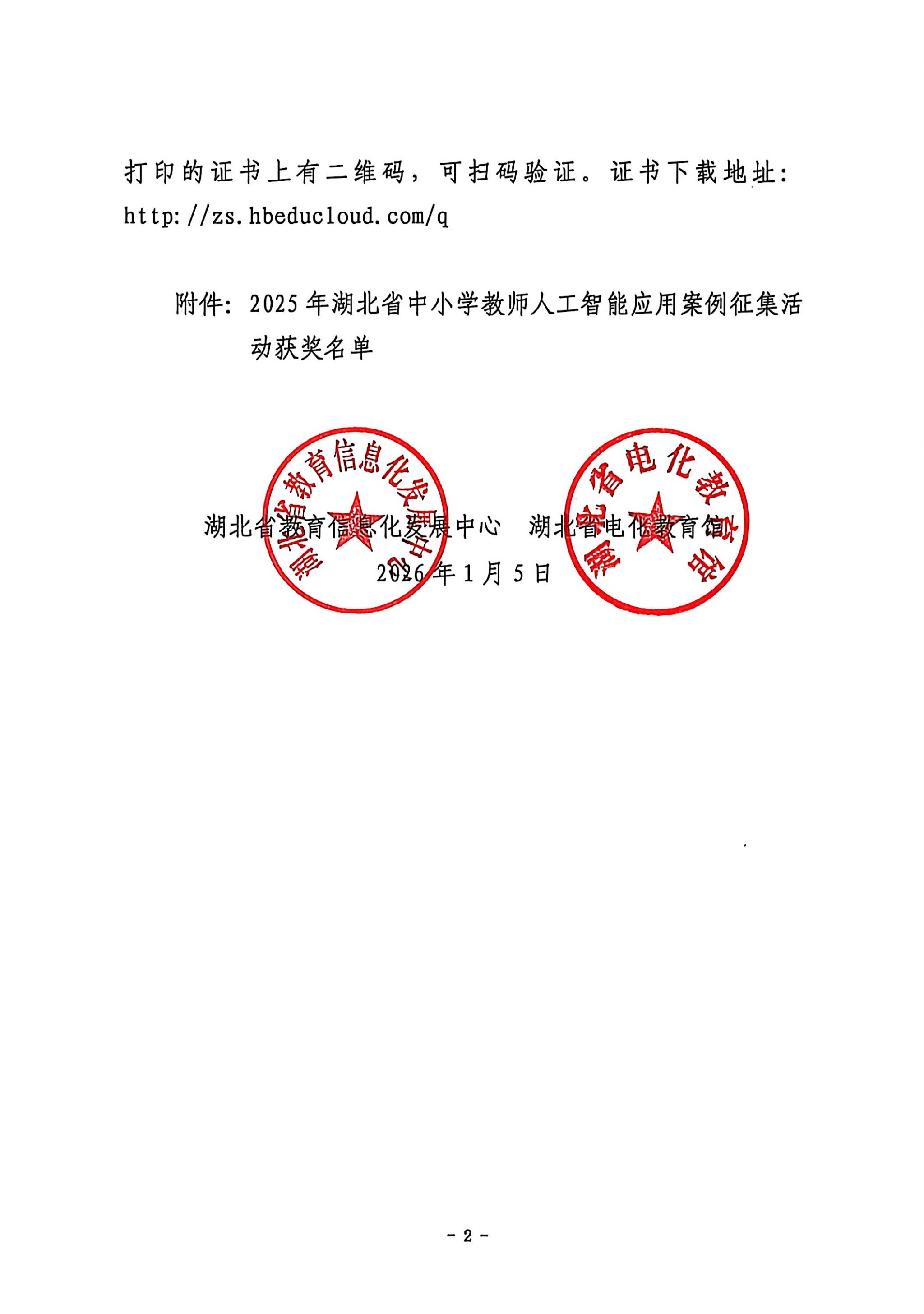 关于公布2025年湖北省中小学教师人工智能应用案例征集活动遴选结果的通知