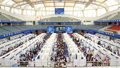 在上海交通大学闵行校区拍摄的“2026届上海高校毕业生秋季校园招聘会暨长三角联合招聘会”现场。 新华社记者 刘颖 摄