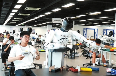 在位于浙江绍兴上虞区的杭州湾具身智能创新中心,工作人员操作机器人进行不同场景作业的数据采集。新华社记者 翁忻旸 摄