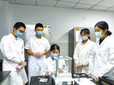 重庆八中学生在进行科学实验。重庆市教科院 供图