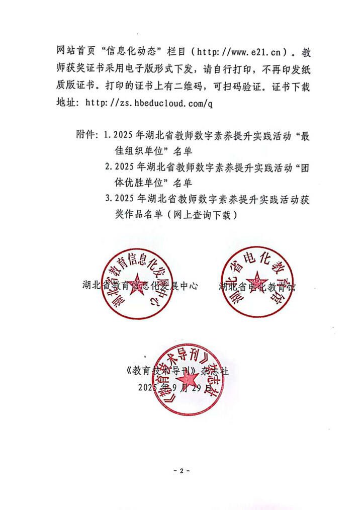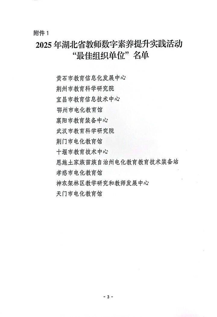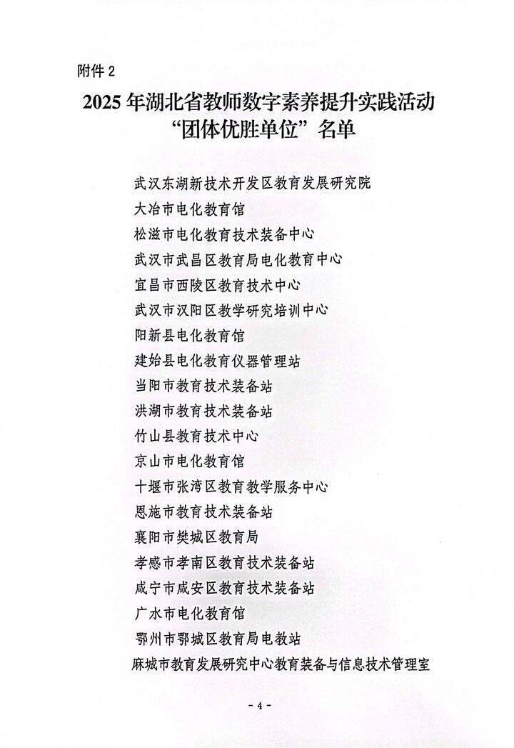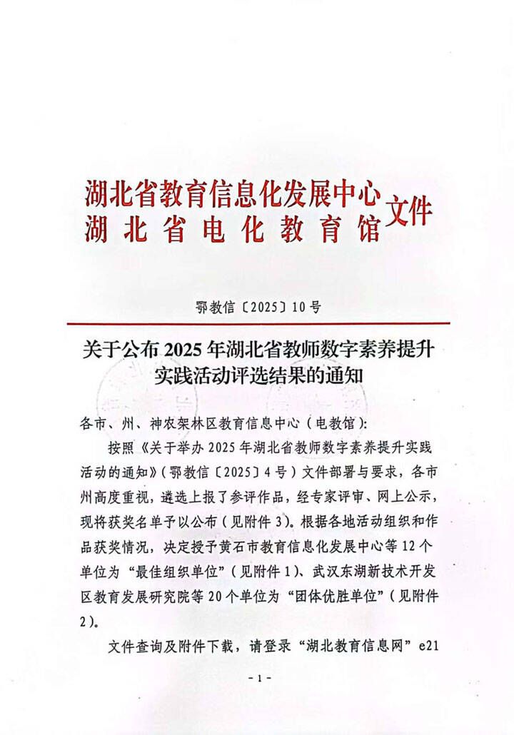 关于公布2025年湖北省教师数字素养提升实践活动评选结果的通知