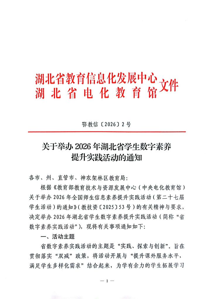 关于举办2026年湖北省学生数字素养提升实践活动的通知