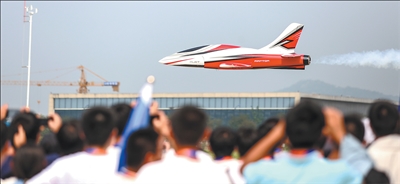 10月8日,2025中国大学生飞行器设计创新大赛开幕式在浙江省湖州市德清县举行。本次赛事设置固定翼、旋翼、火箭等多个类别,吸引了全国150余所高校的近4000名大学生同场竞技。 图为10月8日,选手在进行飞行器飞行展示。 李 选摄(人民视觉)