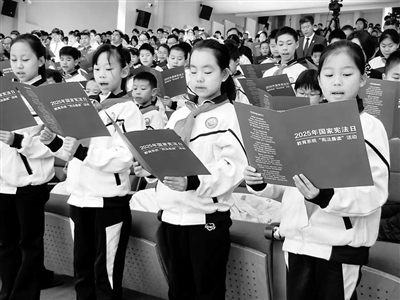 12月4日,2025年国家宪法日教育系统“宪法晨读”活动主会场,师生在共读宪法。本报记者 林焕新 摄