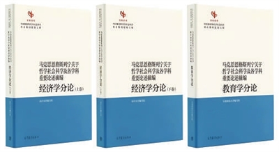 近日,教育部组织编写的“经典系列”首批成果《马克思恩格斯列宁关于哲学社会科学及各学科重要论述摘编 经济学分论》《马克思恩格斯列宁关于哲学社会科学及各学科重要论述摘编 教育学分论》由高等教育出版社出版发行。